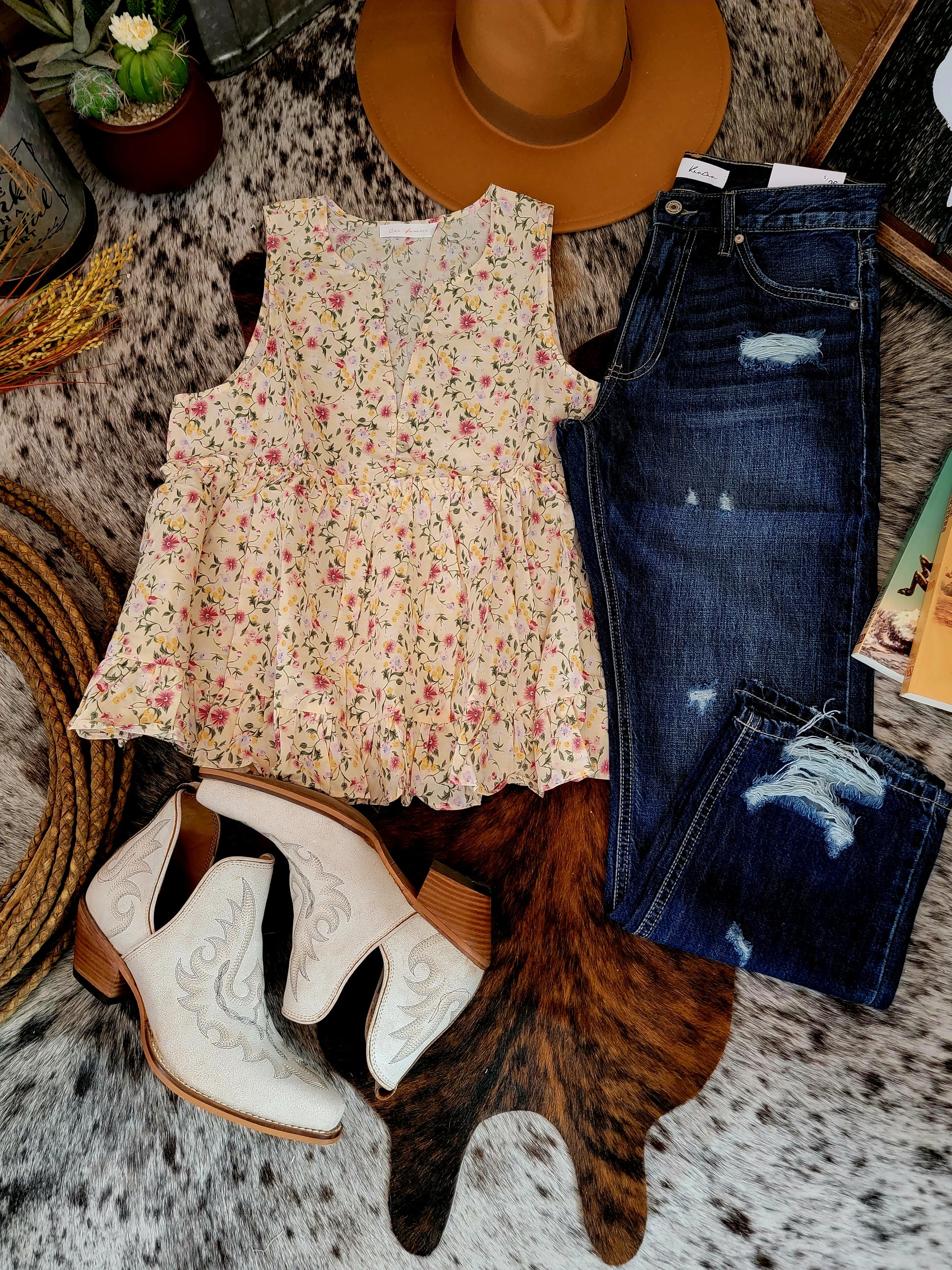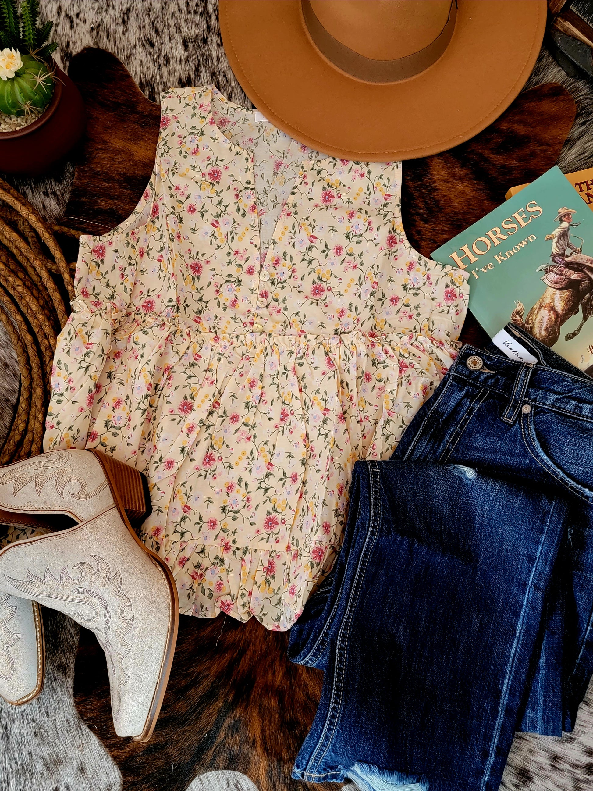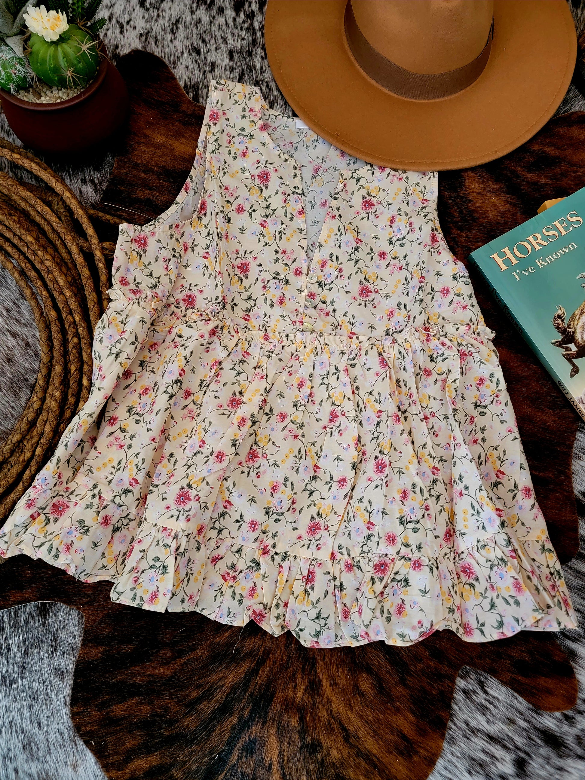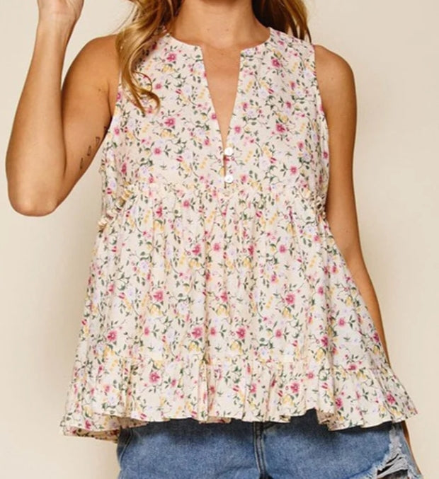 WOMEN'S SLEEVELESS V-NECK FLORAL BABYDOLL TANK TOP