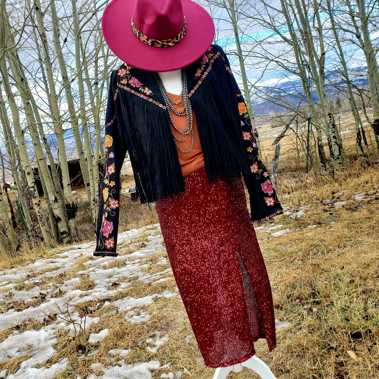 Red sequin skirt with slit