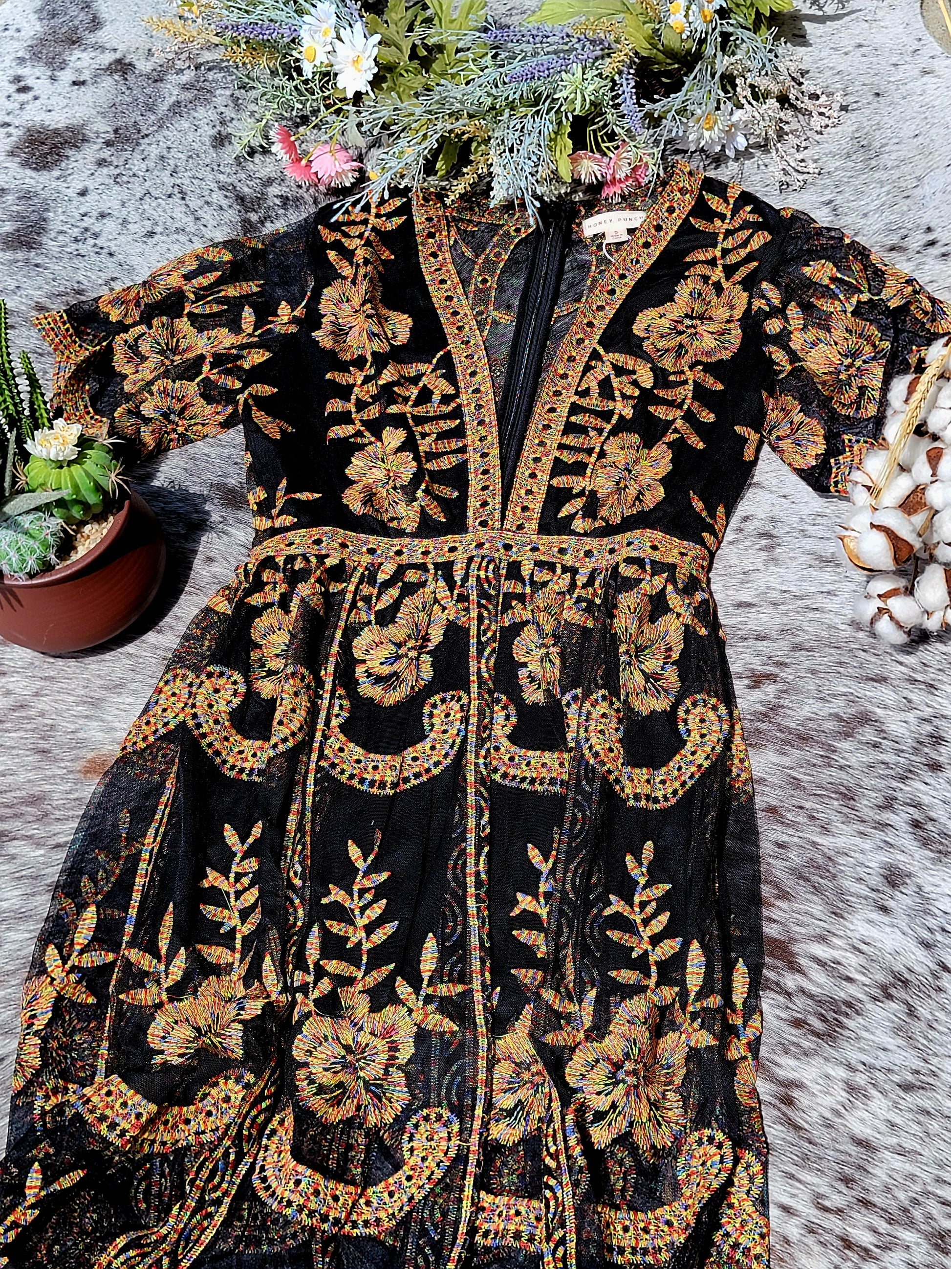 Model is wearing size small Length: 57" Bust: 32" Waist: 13".