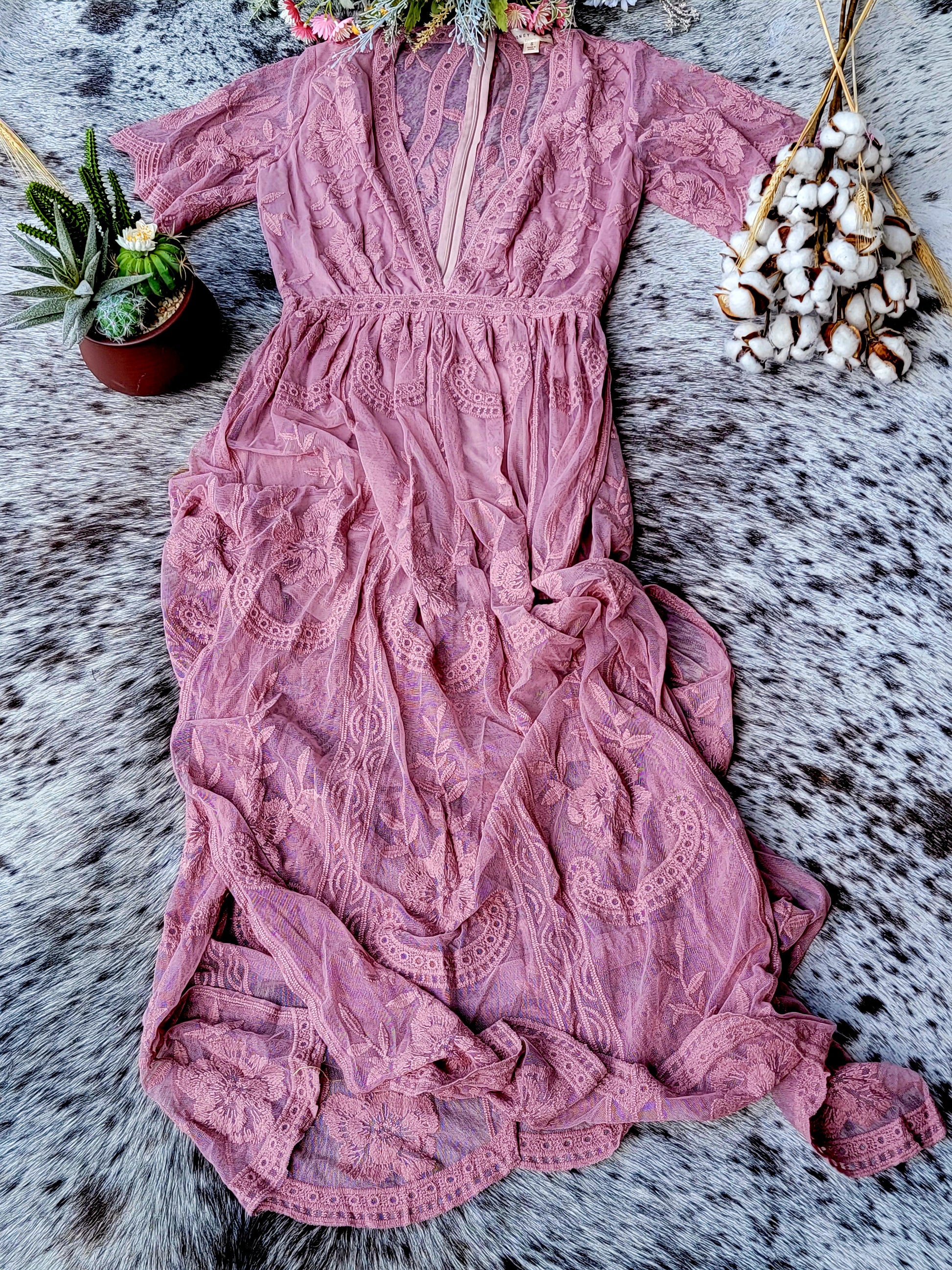 Model is wearing size small Length: 57" Bust: 30" Waist: 12".
