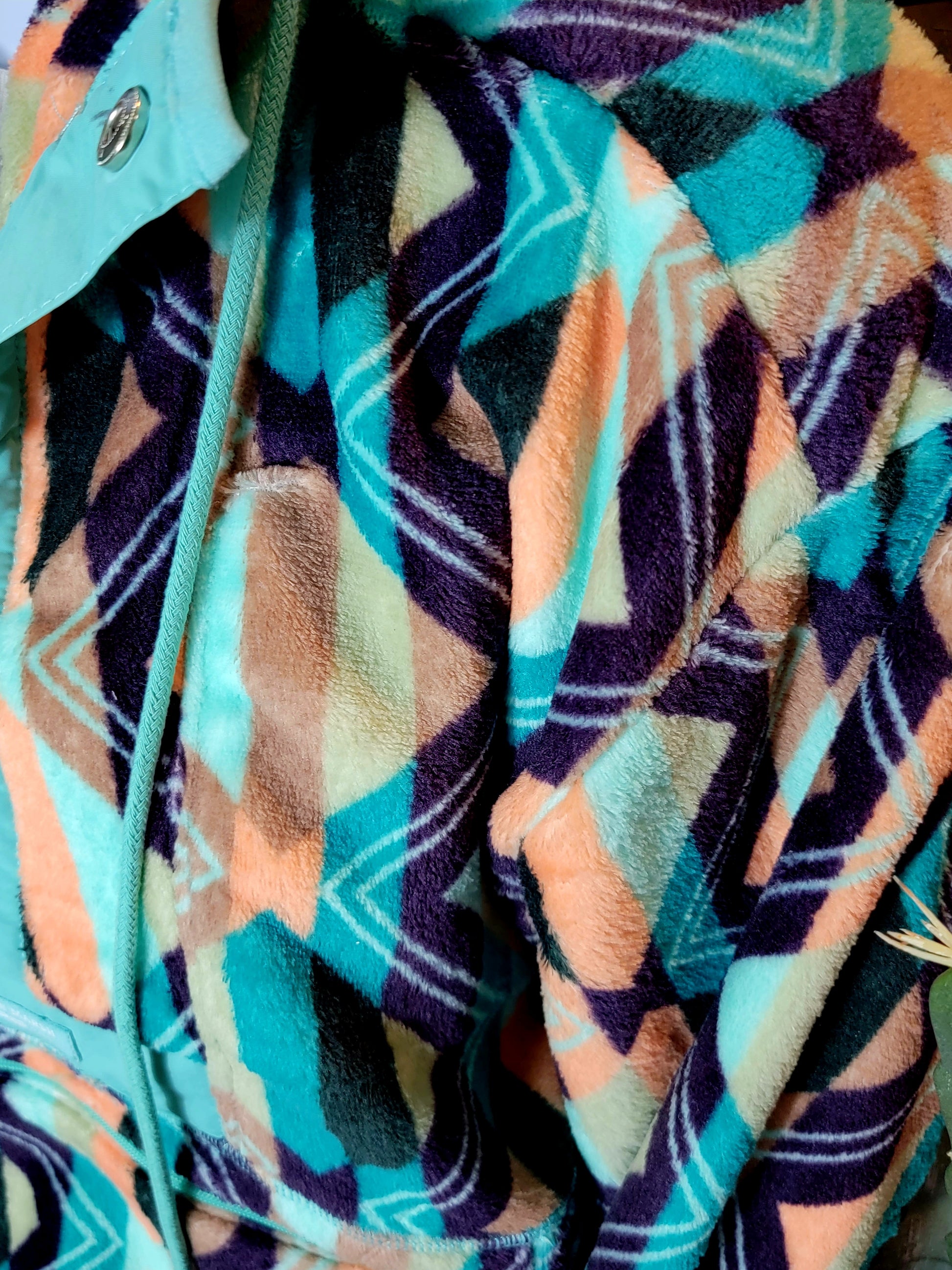 High Quality!! Fluffy double sided fleece, cozy and provides layerable warmth. With a corded drawstring and a three snap placket for insulation.